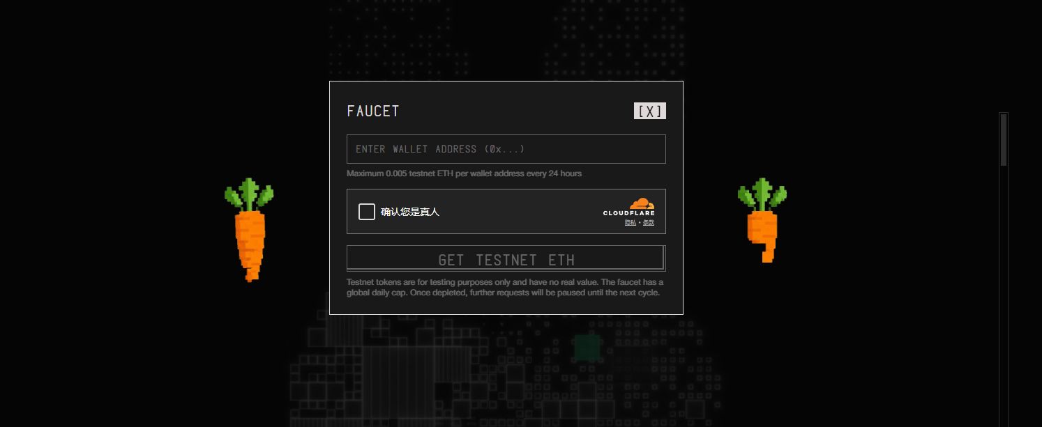 STEP 1. 领取测试币(链接: https://testnet.megaeth.com/#1 )。