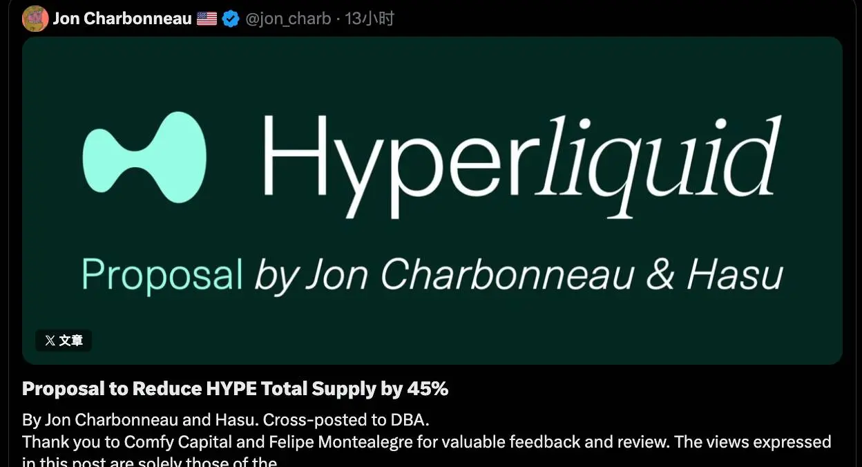 在这个背景下,投资经理 Jon Charbonneau(DBA Asset Management,持有大量 HYPE 仓位)和独立研究员 Hasu 在 9 月 22 日发布了一份关于$HYPE 的非官方提案,内容十分激进;省流版本是: