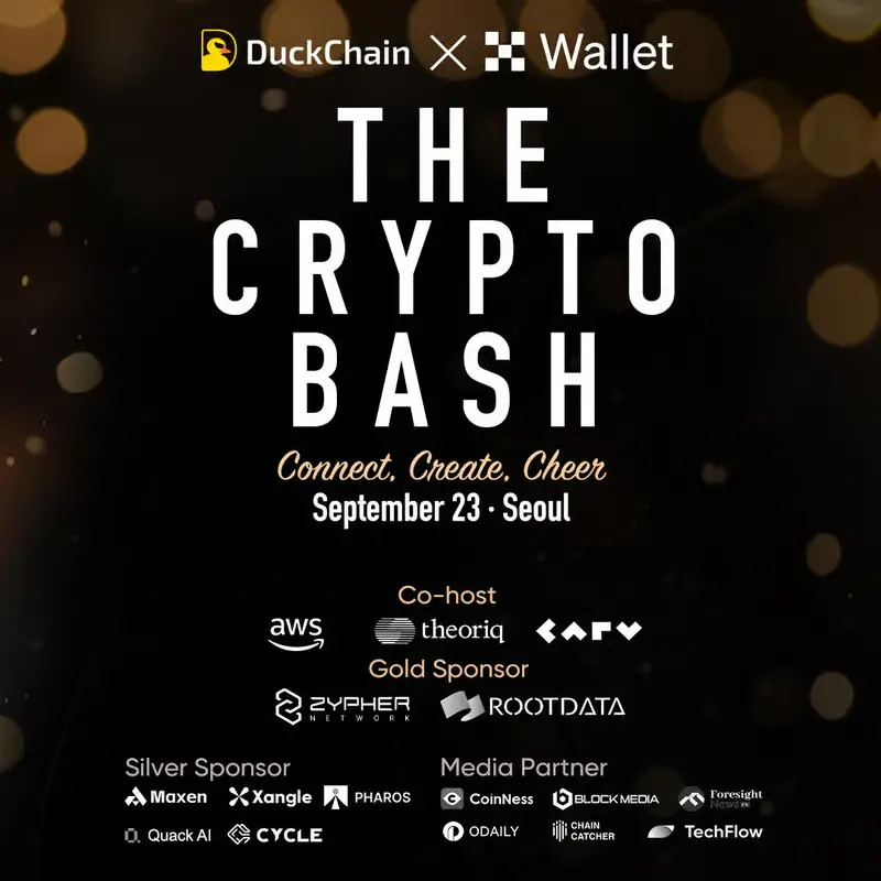 由 DuckChain 携手 OKX Wallet 主办的 THE CRYPTO BASH ,将在 Korea Blockchain Week 2025 期间重磅登场。这是一场专属的鸡尾酒社交派对,旨在为行业精英打造高品质的交流与合作平台。活动将聚集 KOL、创始人、投资人以及区块链领域的核心人物 ,在轻松氛围中畅谈前沿趋势、拓展人脉网络,并进一步巩固和扩大在韩国市场的影响力。