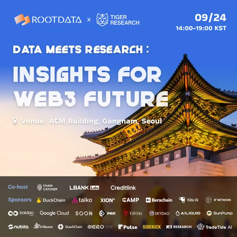 RootData 将汇聚来自全球的建设者、投资人和创新者,同时邀请顶级公链项目和韩国领先的研究机构,共同探讨和塑造 Web3 的未来。通过分享前沿趋势、项目经验和研究成果,该活动致力于打造一个深度交流的平台,激发更多有意义的合作与创新。