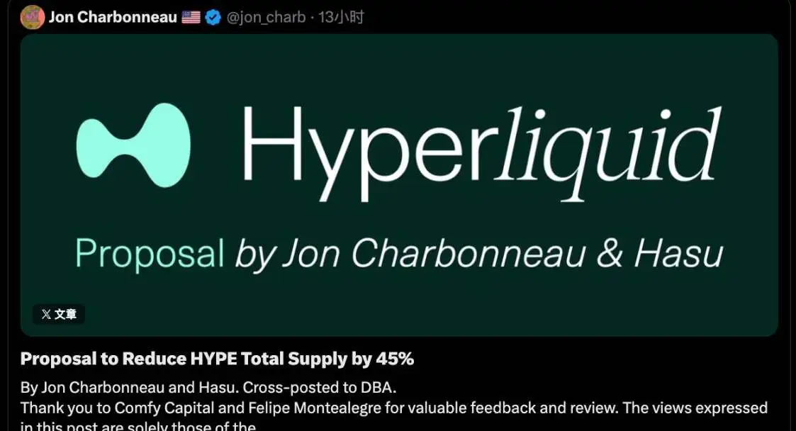 在这个背景下,投资经理 Jon Charbonneau(DBA Asset Management,持有大量 HYPE 仓位)和独立研究员 Hasu 在 9 月 22 日发布了一份关于 $HYPE 的非官方提案,内容十分激进;省流版本是: