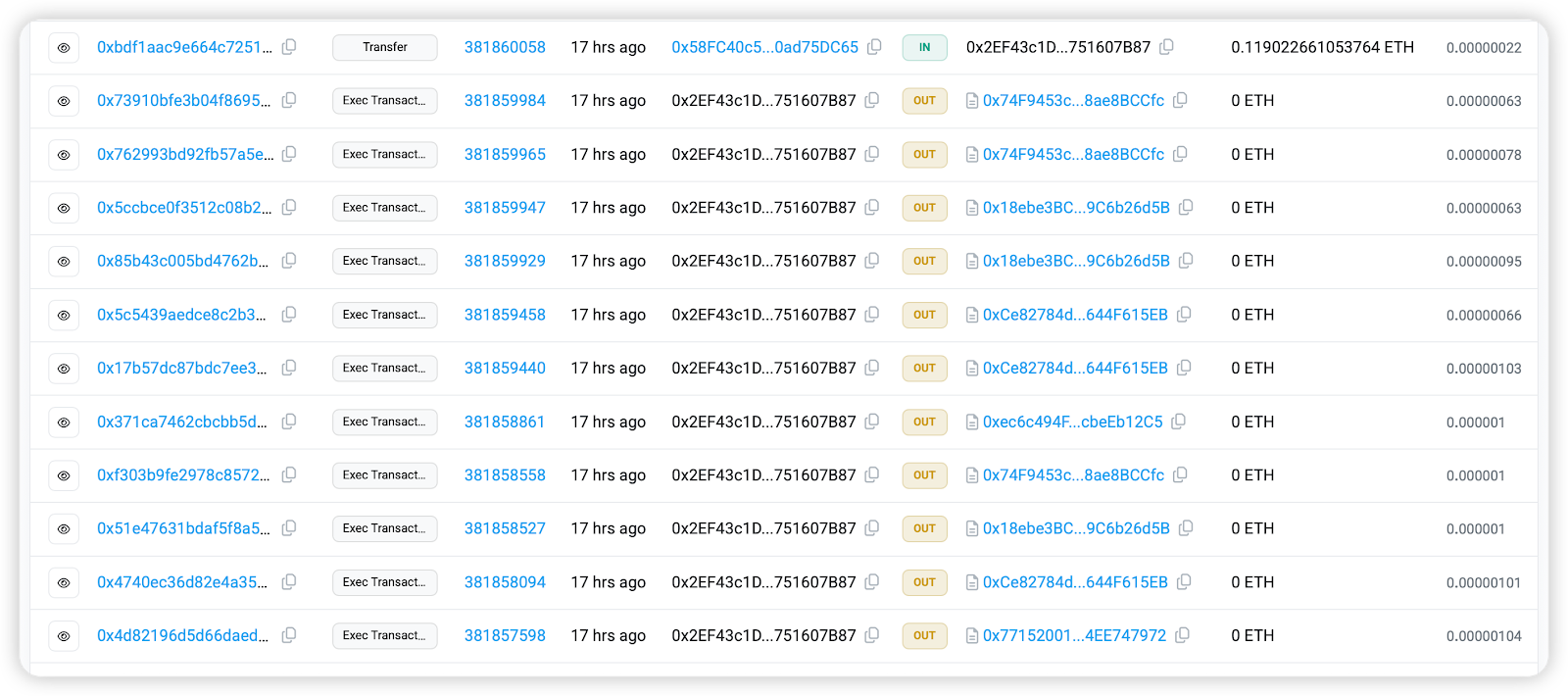 以下为 ExVul 团队链上追踪到的疑似黑客地址: