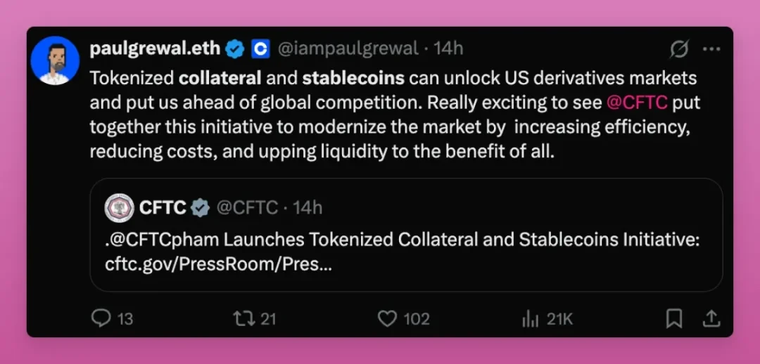监管也在顺应这一趋势。《GENIUS 法案》正推动全球各国跟进稳定币监管;美国商品期货交易委员会(CFTC)近期还允许将稳定币作为衍生品的代币化抵押品,这在支付需求之外,又为稳定币增添了资本市场需求。