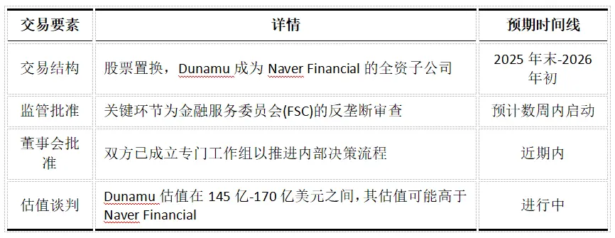根据韩国《朝鲜日报》等多家媒体报道,本次交易采用了 股票置换 的结构。具体而言,Naver 的金融子公司 Naver Financial 将发行新股,用于收购 Dunamu 的全部已发行股份,使后者成为其全资子公司。