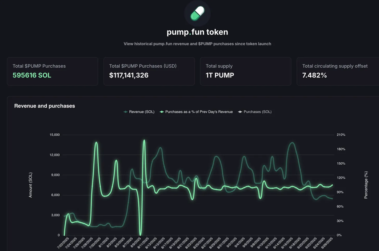 与此同时, Pump.fun 通过回购已减少了约 7.5% 的 PUMP 代币流通量。