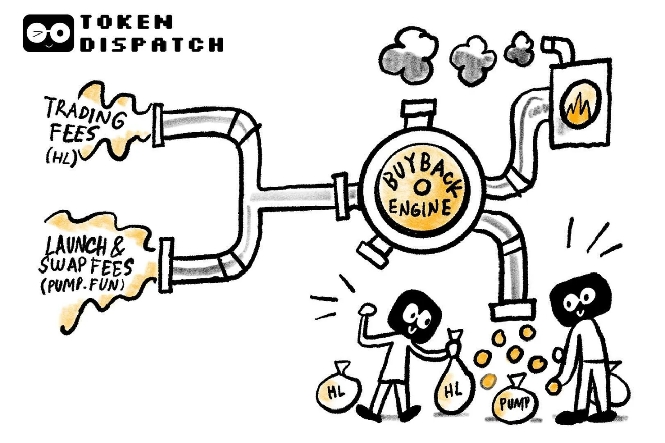 该行业的两大「收入引擎」—— 永续期货交易所 Hyperliquid 与 Meme 币发行平台 Pump.fun —— 正将几乎每一分手续费收入都用于回购自家代币。