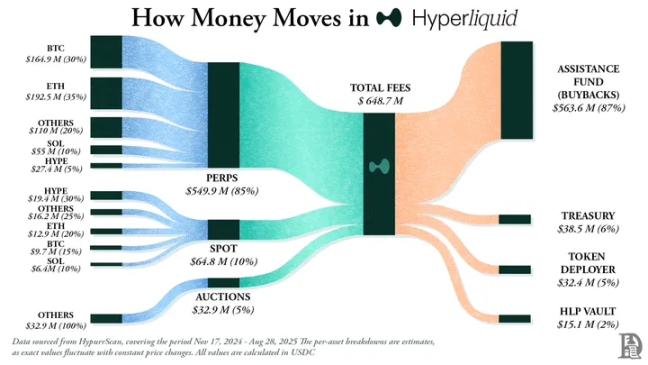 该平台每天将超过 90% 的手续费收入划入「援助基金」,而这笔资金会直接用于在公开市场购买 HYPE 代币。