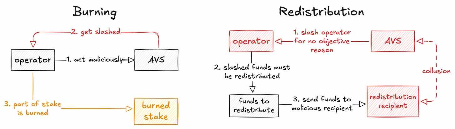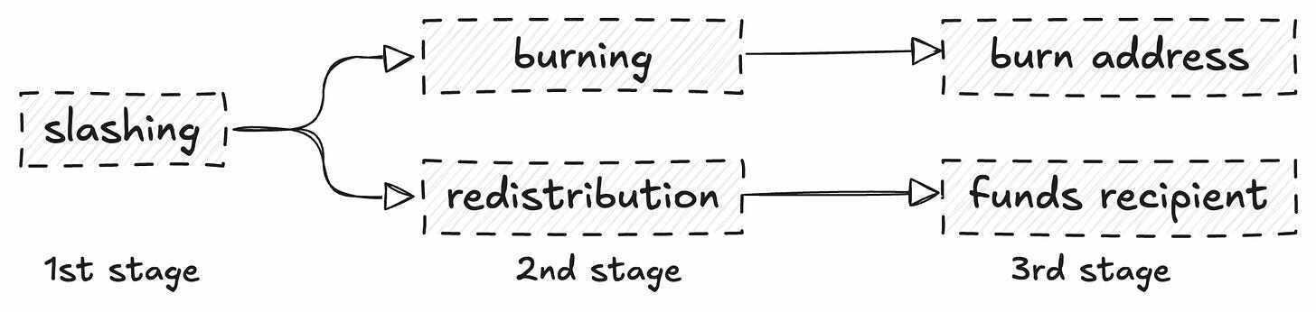 - 重新分配则将价值转移给另一方(不一定是受害方)。 此外,销毁也可能通过协议内置机制独立发生,而无需削减。