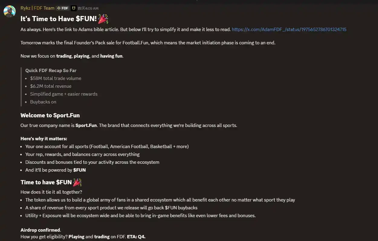 10 月 9 日,据 Base 链上体育预测应用 Football.Fun 官方消息,其母公司 Sport.Fun 将于 Q 4 推出代币 $FUN 并预计将在 Q 4 进行空投,该代币将享受公司旗下预测市场收益分成。