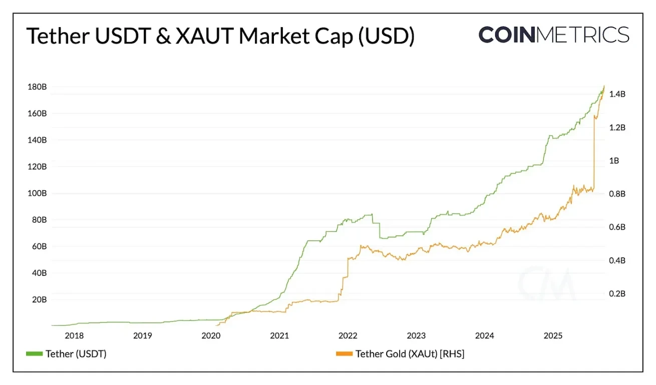 除了美元,Tether 还通过 XAUt 提供代币化黄金敞口,随着对替代性价值存储需求上升,其市值已增长至超过 14 亿美元。Tether 似乎正在扩展这一双重战略,与 Antalpha Platform 寻求一场 2 亿美元的融资,用于设立一个将收购 Tether 的 XAUt 代币的数字资产国库。随着进一步投资于比特币和黄金开采,Tether 正朝着融合不同形式的价值保存方式迈进。
