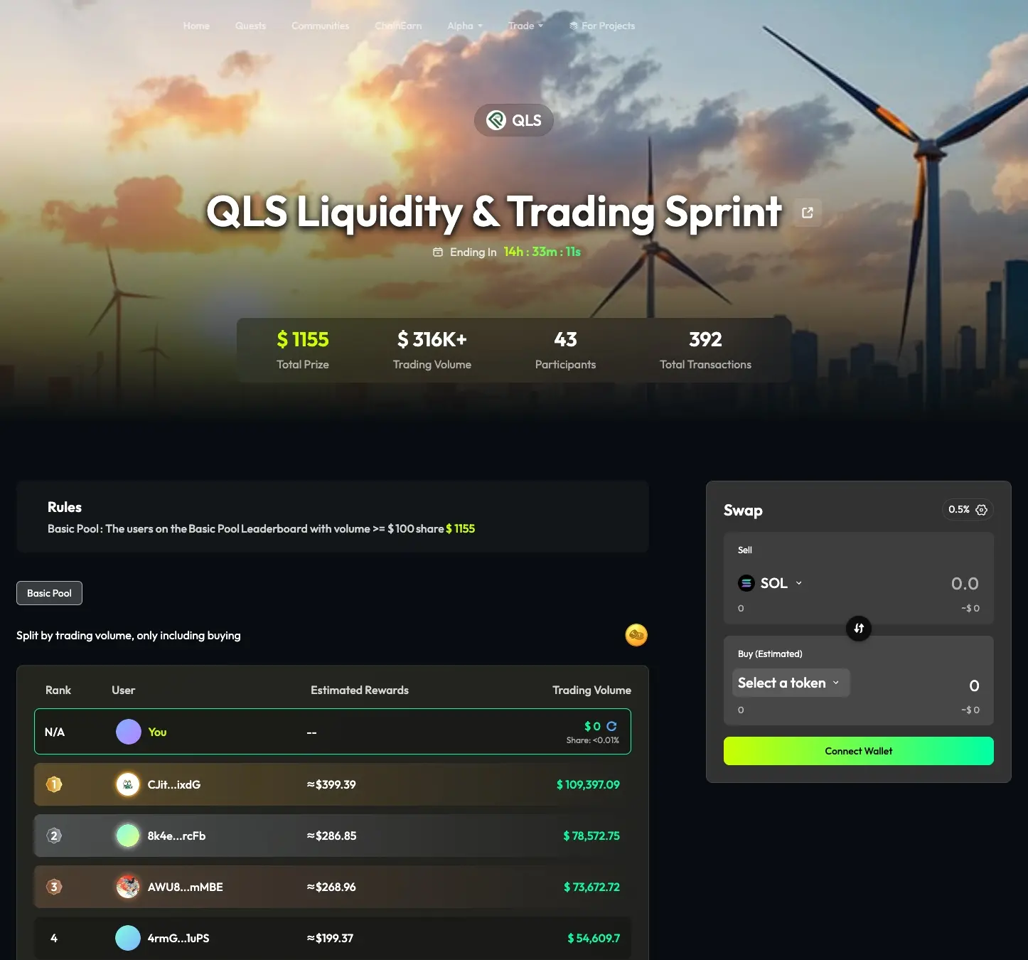 在TaskOn平台上,一场 QLS 流动性与交易冲刺的竞赛 以1155美元的奖金,驱动了三十多万美元的交易量。
