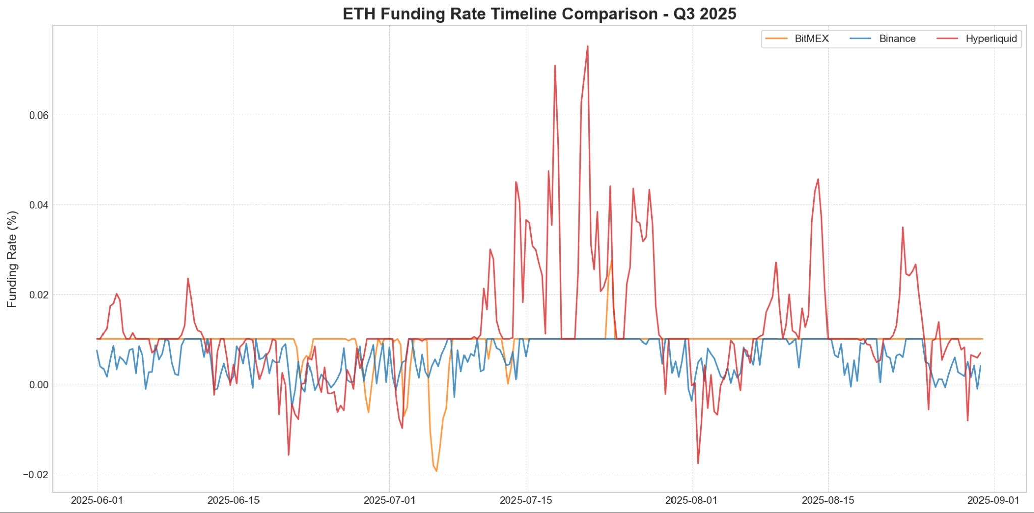 BitMEX、Hyperliquid 和 Binance 上的以太坊 (ETH) 资金费率分析,以及 Hyperliquid