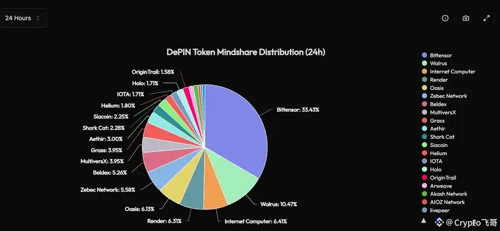链上数据显示,Bittensor 在 DePIN(去中心化物理基础设施)领域的市占率已超过 33%。随着机构资金的加速布局,TAO 正逐渐从单纯的「AI 概念币」过渡为具有真实网络价值与现金流模型的基础资产。市场普遍认为,TAOX 与灰度的双重动作,正成为 AI 赛道机构化的重要分水岭。