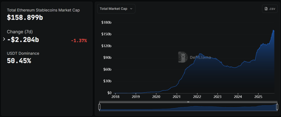 目前,以太坊上的稳定币市值近 1,600 亿美元,是加密市场中最深的流动性池。然而,这笔巨额资本在衍生品交易方面仍未被充分利用,几乎处于“休眠”状态。Synthetix V 3 则计划直接利用这一庞大的的天量流动性。