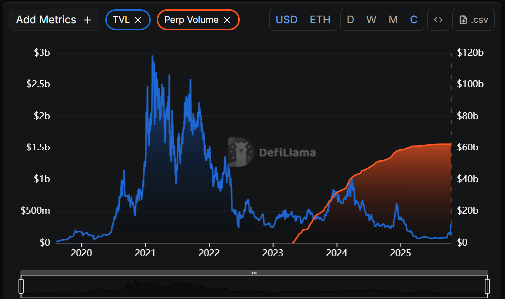 SNX 本次暴涨是市场对老牌 DeFi 基础设施 Synthetix 根本性重构后,对其未来价值捕获能力的重估,核心驱动力主要来自于 Synthetix 即将于 2025 年第四季度在以太坊主网推出的去中心化永续合约交易所(Perp DEX),而其能否在万亿级别的衍生品赛道重获生机,仍需时间考验。