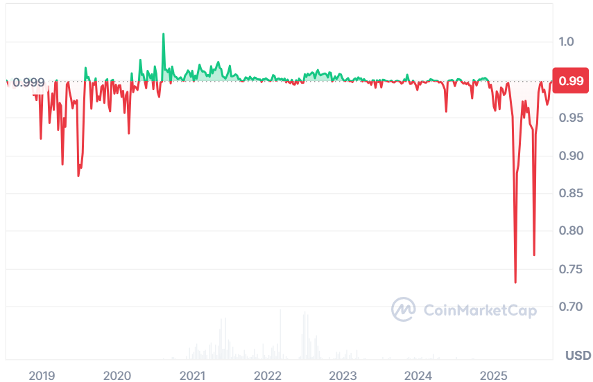 2024 年 12 月,官方宣布将实施该方案,但效果不甚理想,sUSD 仍在今年 4 月及 7 月大幅脱锚 2 次,还创下了跌破 0.75 美元的最大脱锚幅度。