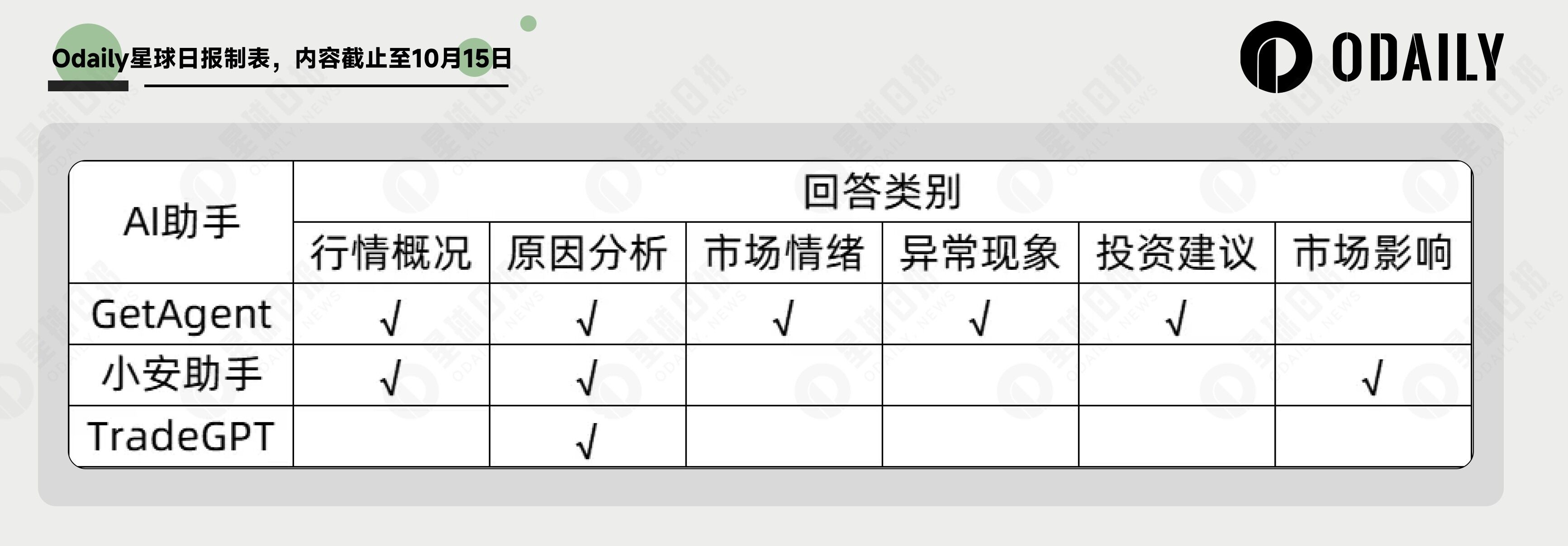 GetAgent 旨在成为一站式助手,完成从是什么、为什么到怎么做的全链路闭环 ,交由用户根据需要选择对应的信息和方案;而 TradeGPT 则最为聚焦,只回答用户问题最核心的部分,绝不会进行二次延伸 ,需要用户有能够精准判断关键问题的能力,而小安助手则介于二者之间。