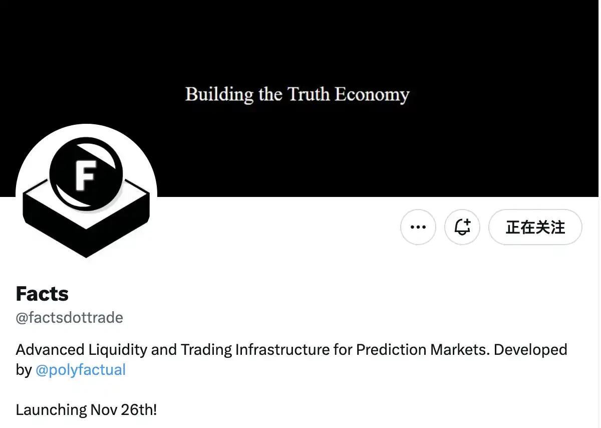 更重要的是,这种正统性背后凝聚的是市场参与者真金白银投注出来的共识。因此,持有「真相代币」的人,相当于持有了对真实发生结果的一种证明或权益。Polyfactual 设想,未来这些真相代币可以在二级市场流通,或用于特定社区治理,使得信息的可靠程度可以用市场价格来度量,为此团队已经着手开发类似于「预言机」的产品 Facts,将在 11 月 26 日正式上线。