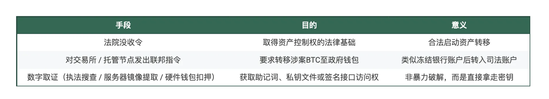 一旦司法程序确认资产为犯罪所得,其属性便从“个人控制的加密货币”,转变为“国家管辖下的数字资产凭证”。