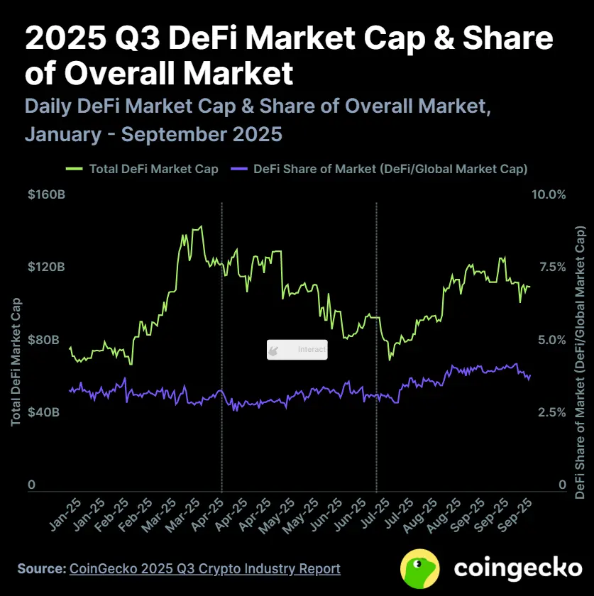 2025 Q3,DeFi 总锁仓价值(TVL)从 1,150 亿美元 上升至 1,610 亿美元(+40.2%) 。