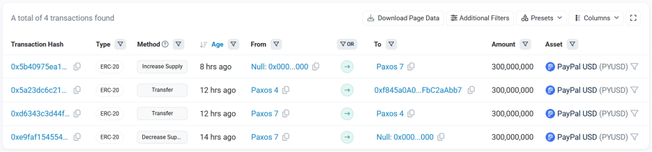事件始于Paxos的一次内部操作,根据其在Etherscan上的交易记录推断,Paxos原本应准备在不同钱包之间转移3亿PYUSD,但却意外将其销毁了。