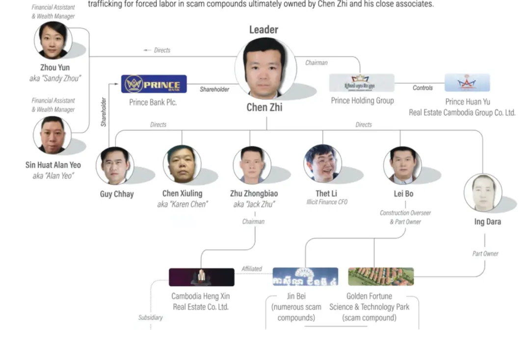 陈志是柬埔寨 「太子控股集团」 的创始人兼董事长,该集团号称在 30 多个国家经营房产、金融等业务,实则被指控暗中发展为东南亚最大的跨国犯罪组织之一。据美国司法部和财政部 披露的信息,陈志等人自 2015 年起在柬埔寨各地运营至少 10 个诈骗产业园区,诱骗全球受害者投入虚假加密投资,手段正是近年来臭名昭著的 “杀猪盘”。美国检方称陈志是这个 “网络诈骗帝国” 的幕后主谋,不仅默许对员工施暴、贿赂他国官员提供保护伞,还纵容集团上下通过奢华消费挥霍诈骗所得,包括购买游艇、私人飞机,甚至纽约拍卖行拍卖的毕加索名画。