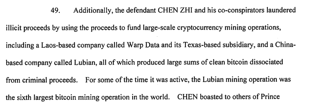 起诉书揭示,陈志及其同伙将诈骗所得投向自己控制的加密货币挖矿业务,以此 “洗出” 不带犯罪污点的全 新比特币。在表面上合法的采矿过程中,原本的黑钱转换为新挖出的 “干净” 比特币资产,从而试图切断资金与犯罪之间的关联。这一洗钱策略使得太子集团名下的矿场源源不断地产出比特币,成为其隐匿赃款的重要渠道之一。