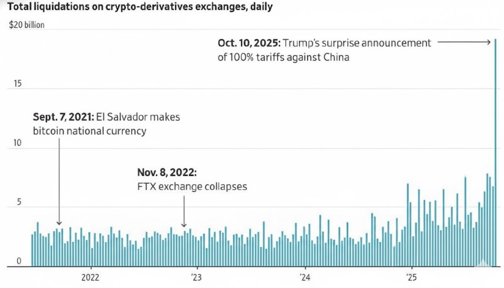 2025年10月11日,加密市场经历了其历史上最剧烈的去杠杆事件之一。最初由地缘政治领域的冲击波——特朗普关于贸易关税的威胁性帖子——引发的事件,迅速演变成一场系统性的传染。其结果是创纪录的193.5亿美元爆仓,影响了超过160万名交易者。