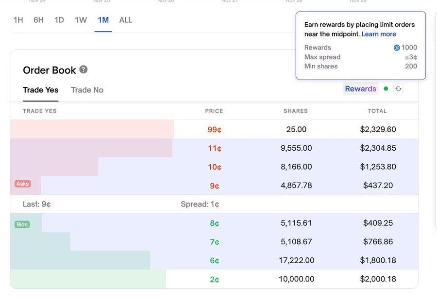 Polymarket 还通过奖励机制鼓励用户提供流动性。