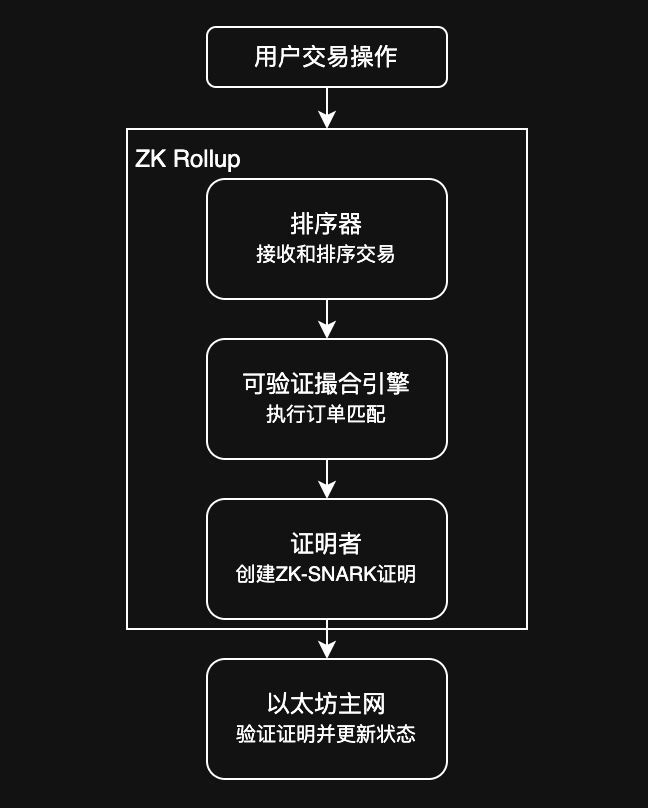 撮合引擎 :接收来自排序器的Batch,并严格 遵循 "价格优先、时间优先" 的撮合逻辑 。每次成功的撮合都会为生成零知识证明准备好数据,确保任何人都能事后验证撮合过程的公平性,避免了操纵的可能。