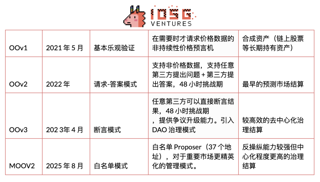 UMA 乐观预言机经历四个版本,从一开始关注合成资产到不断进化适配预测市场:
