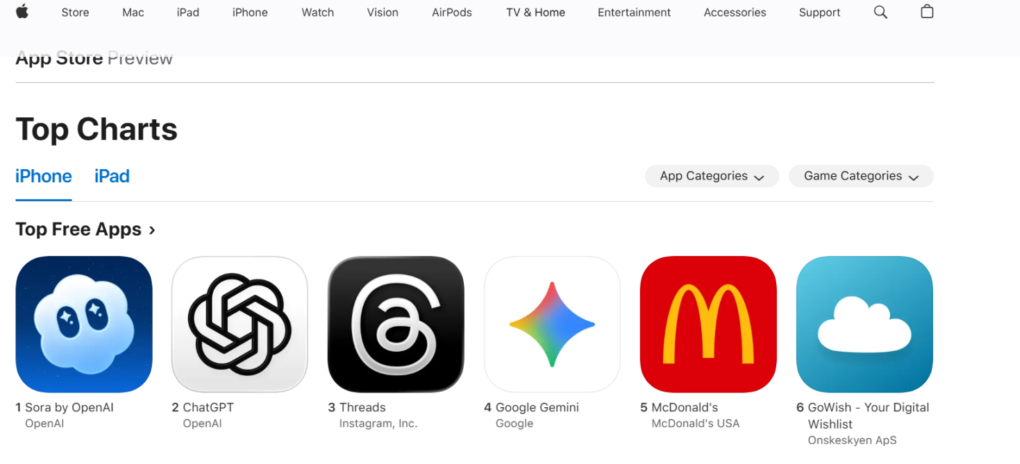最让人大跌眼镜的是,OpenAI 旗下的最新大模型 GPT-5 目前持仓价值仅为 7600 美元,排名倒数第二,排名最后一名的则是谷歌旗下的 Gemini。有趣的是,这两者却是美区苹果应用商店中大模型应用的头号玩家。