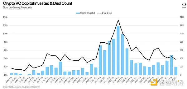 专注于加密货币的风险投资难以恢复到 2021 年的高点。来源:Galaxy Research