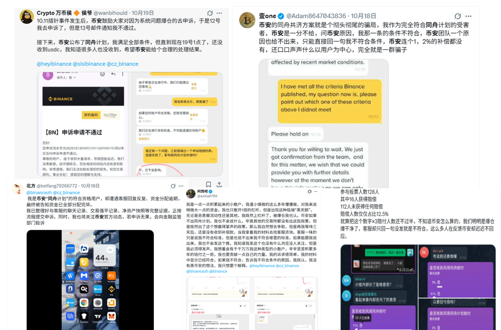 在此种背景下,用户怨声载道,社媒上对币安的口诛笔伐不绝于耳。对此,币安在事件后发布公告进行说明,表示平台个别功能模块确实出现了短暂卡顿,并且部分理财产品因行情剧烈波动出现了脱锚,但由于部分理财产品(如USDE、BNSOL 和 WBETH)脱锚,所导致合约、杠杆和借贷部分仓位被清算的损失,由币安全额承担。赔付分两个批次已完成分发,金额共计约2.83亿美元。