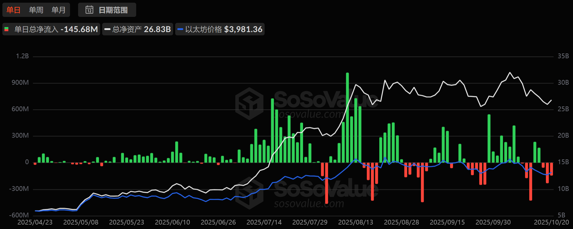 ETF 资金流入同样开始转冷。BTC 现货 ETF 在上周“暴风吸金”之后,已连续 四日 录得净流出;ETH 现货 ETF 近期净流入一直相对较弱,且已连续 三日 净流出。