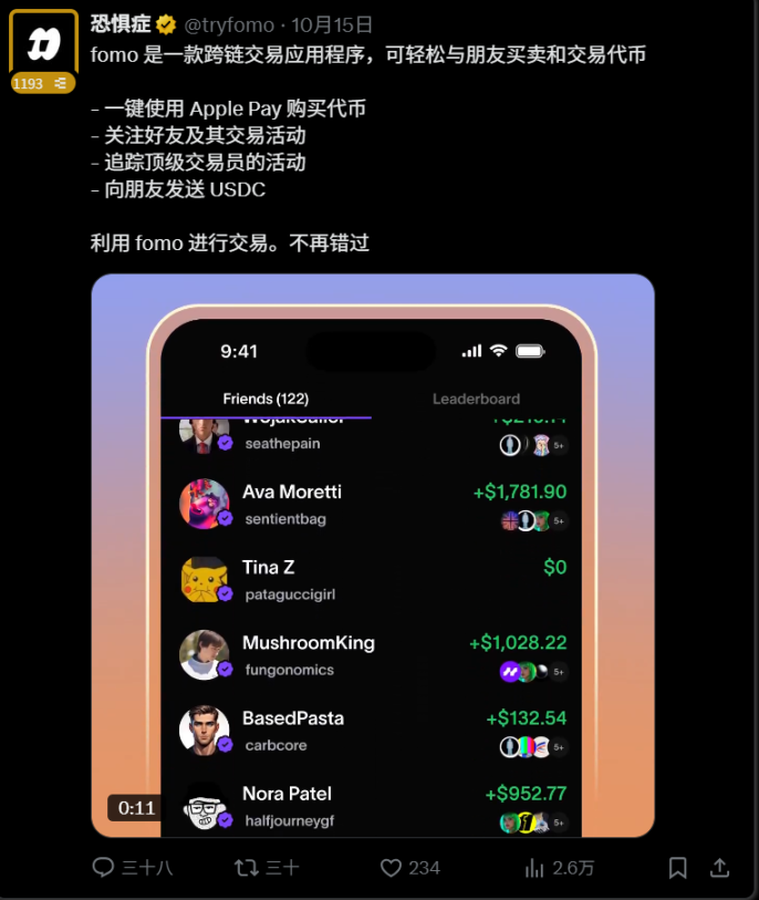 Fomo 是一款专注于移动端的交易应用,它简化了代币发现过程,使用户可以在应用内无缝跟风买入,并关注其他狂热交易者的交易动态。他们最近宣布支持在 Monad 主网上进行交易。