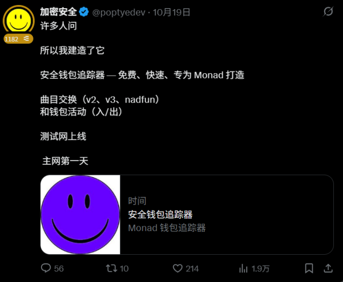 幸运的是@poptyedev 专门为 Monad 上的狂热交易者创建了一个钱包追踪器。