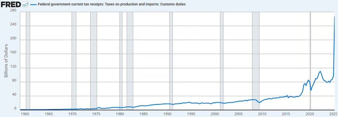 预期关税收入 :假设关税税率为 13%,预计每年可增加 3800 亿美元关税收入。下图展示了截至目前关税带来的影响。