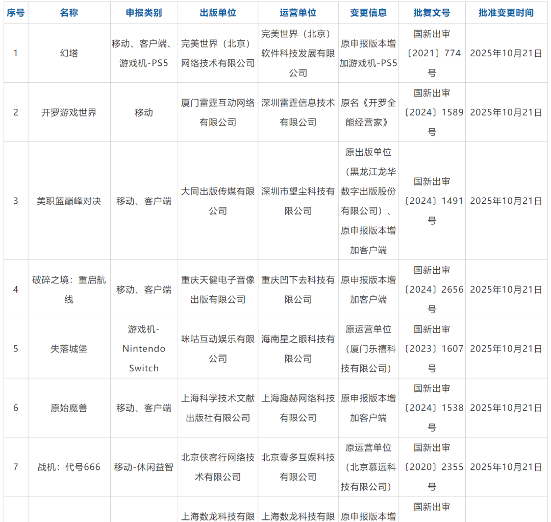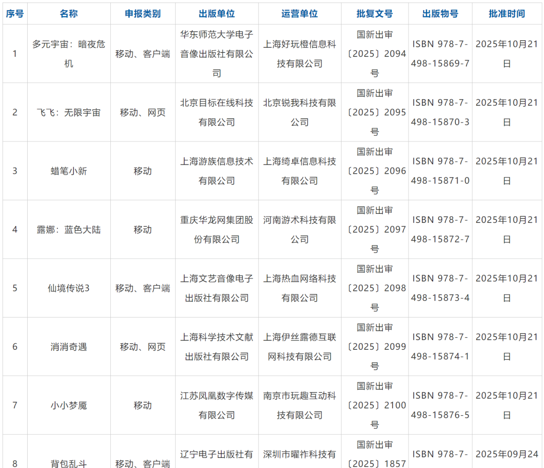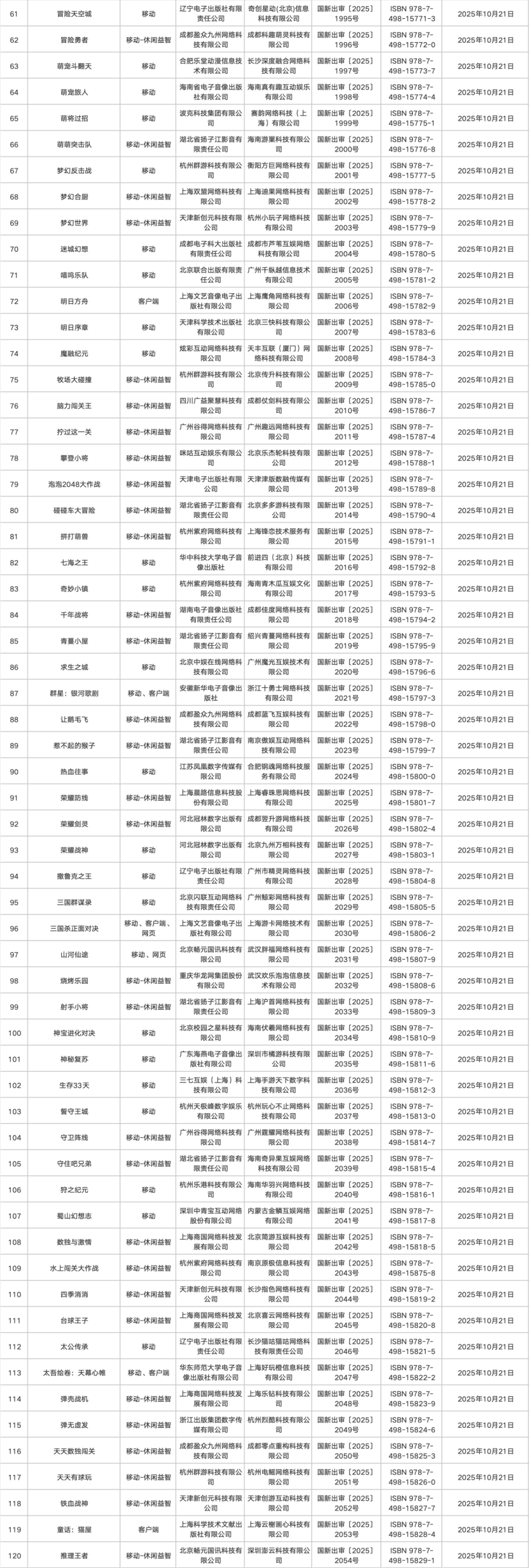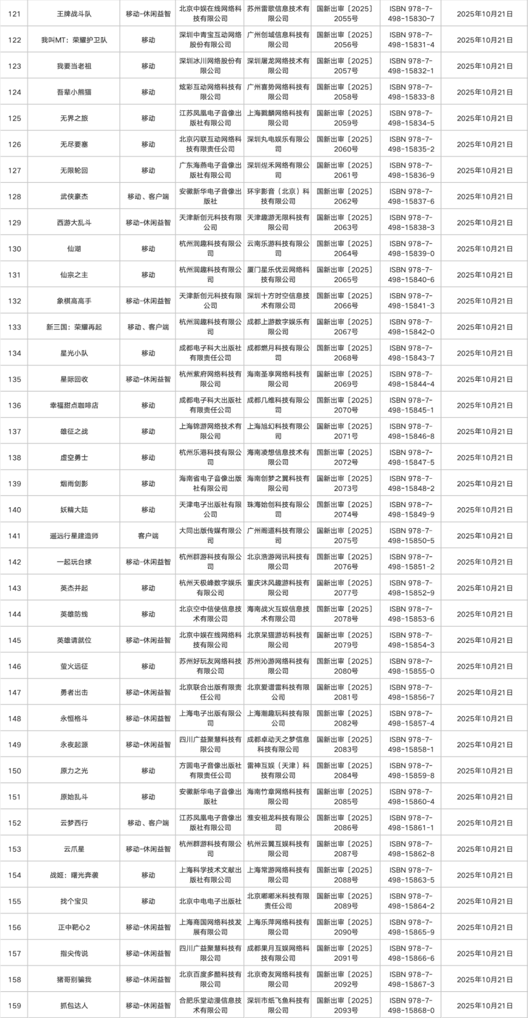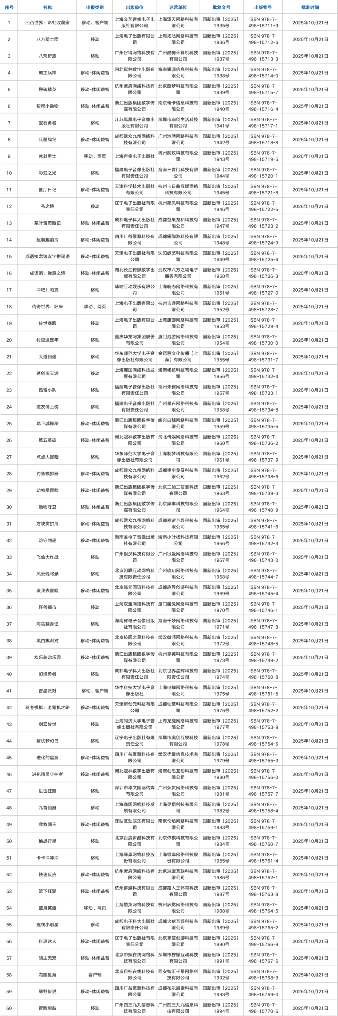 10月22日, 国家新闻出版署官网发布了最新一批网络游戏版号名单。
