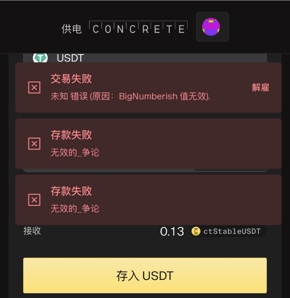 相对而言,普通用户几乎没有参与空间。大量用户反馈,在第一时间进入官网后要么授权失败,要么交易迟迟无法打包,等看到官方推文时页面仅剩 0.13 USDT 可存,看似仍有少量额度,实际上散户几乎无法参与。