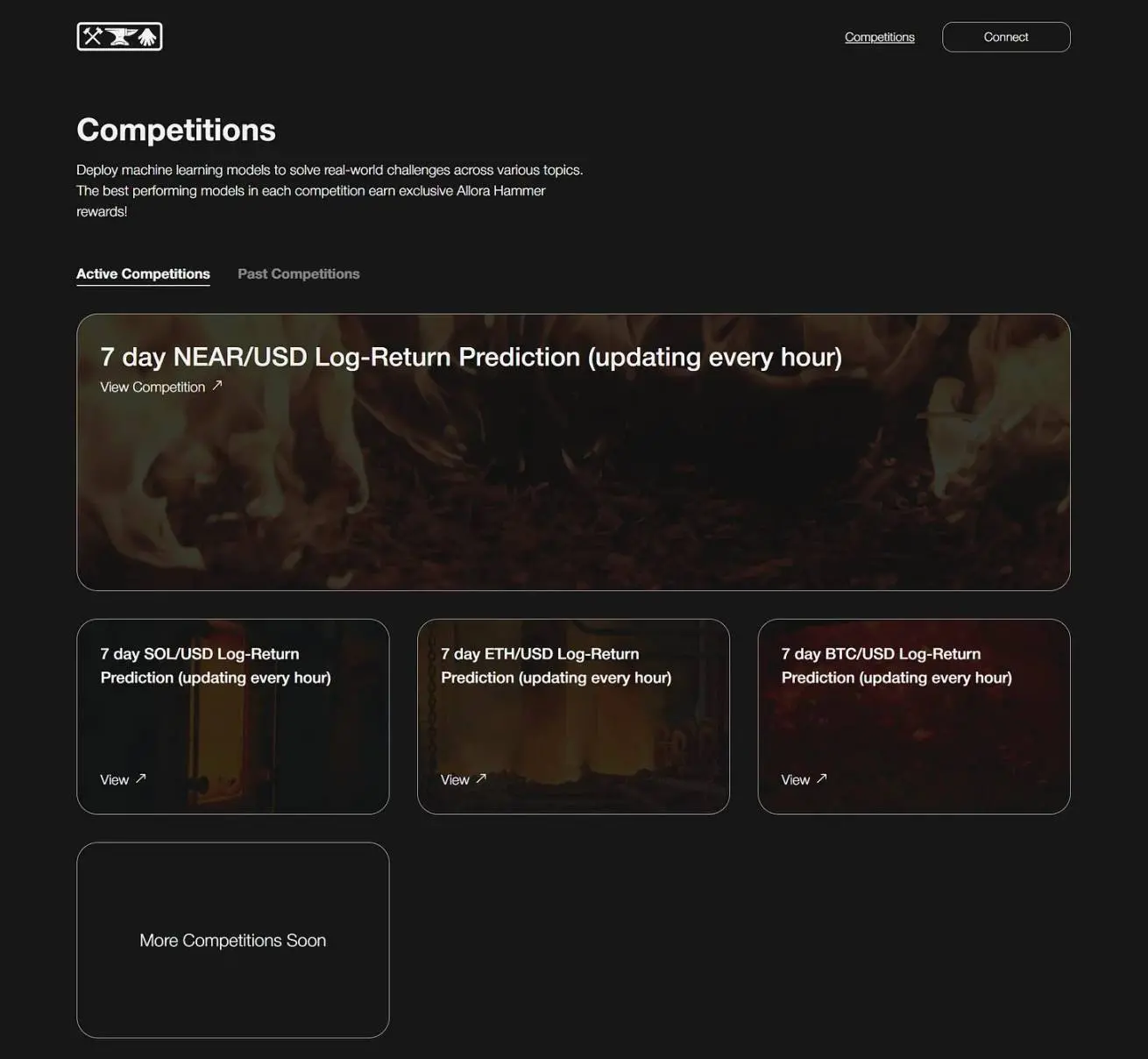 目前,价格预测模型主要聚焦于主流加密资产;表现顶尖的机器学习工程师(被称为「锻造者」或「矿工」)可获得「Allora Hammer」奖励,待主网正式上线后(即将推出),该奖励将转化为 $ALLO 代币激励。