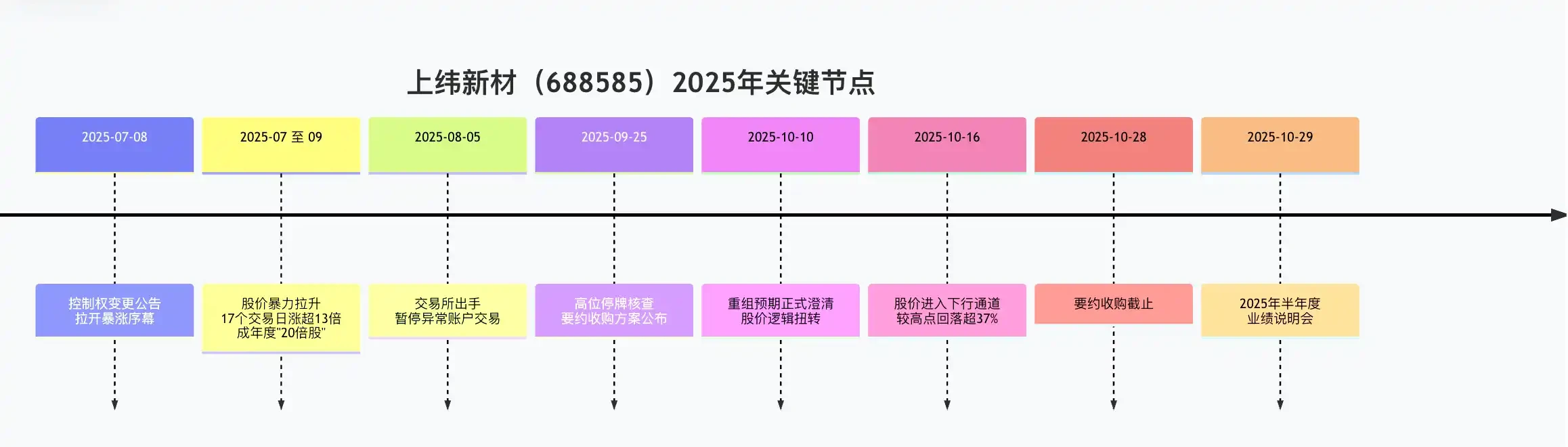 仅仅 17 个交易日,股价从个位数一路飙升,涨幅超过 13 倍。截至 9 月 25 日,上纬新材年内累计涨幅超过 2030%,成为 2025 年 A 股市场第一只「20 倍股」。