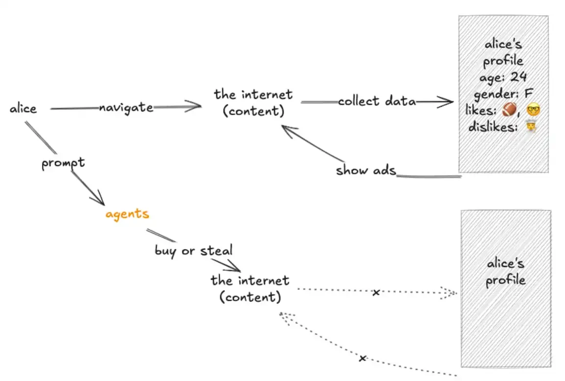 未来,代理要么「窃取」(爬取)内容,要么「购买」内容。API(应用程序接口)将取代传统浏览器,成为互联网的默认通信方式。
