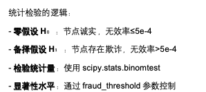 系统使用二项分布检验来检测欺诈行为,通过统计学方法判断计算节点是否诚实。这种方法基于硬件精度和计算复杂度设定了预期的错误率,并通过统计检验来检测异常。