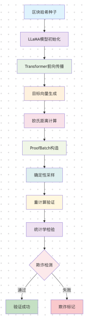 每个计算任务都从统一的LLaMA模型架构开始,通过区块哈希确定性初始化权重。这种设计确保了所有节点使用相同的模型结构和初始权重,从而保证计算结果的一致性。