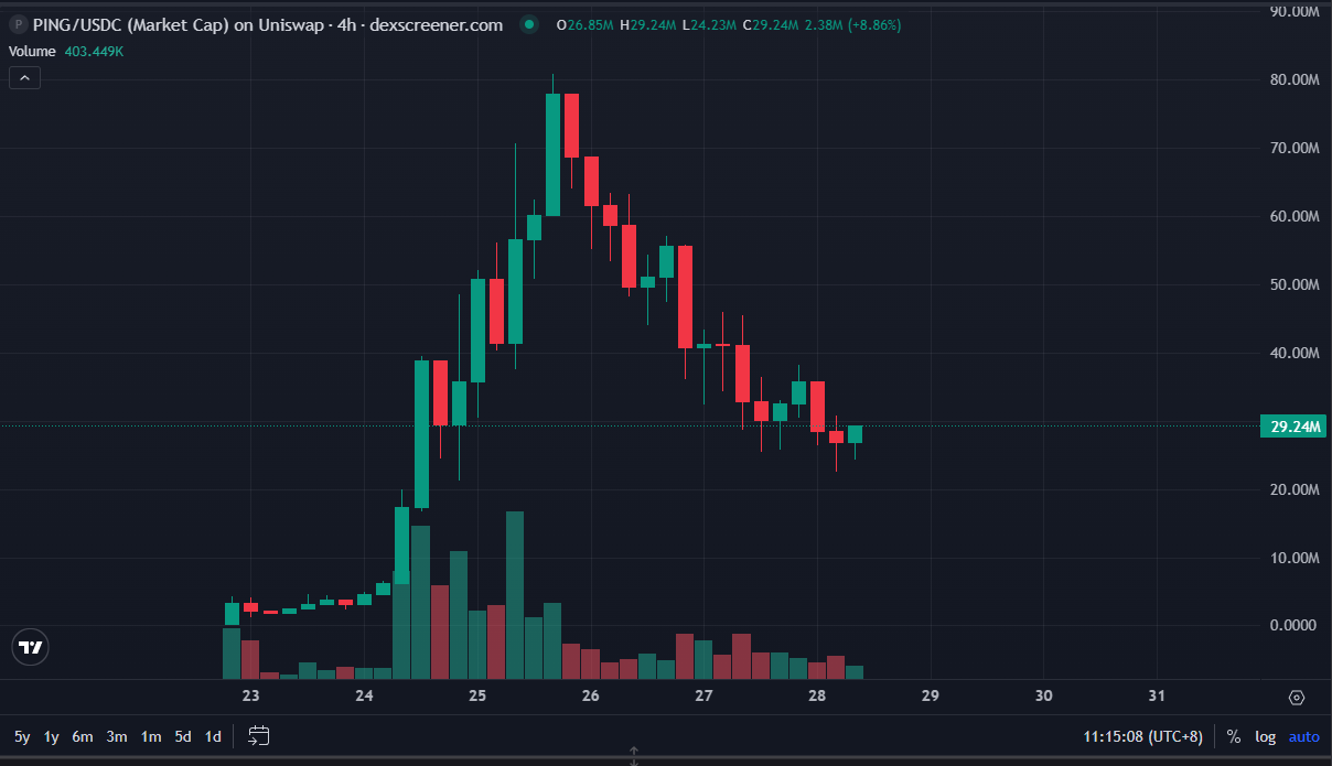 当前市值:PING 市值 10 月 25 一度触及 8000 万美元后出现大幅度回落,暂报 3000 万美元。