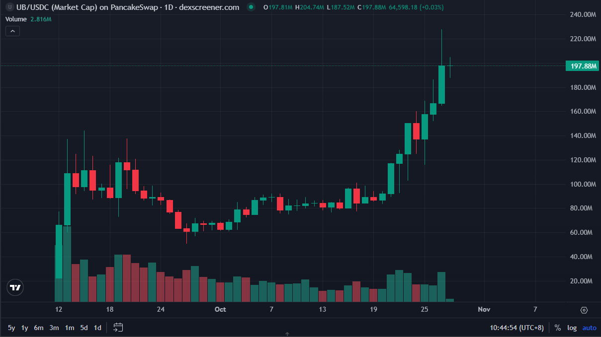 当前市值:UB 市值近几日持续上涨,昨日一度触及 2.3 亿美元,目前暂报 2 亿美元。