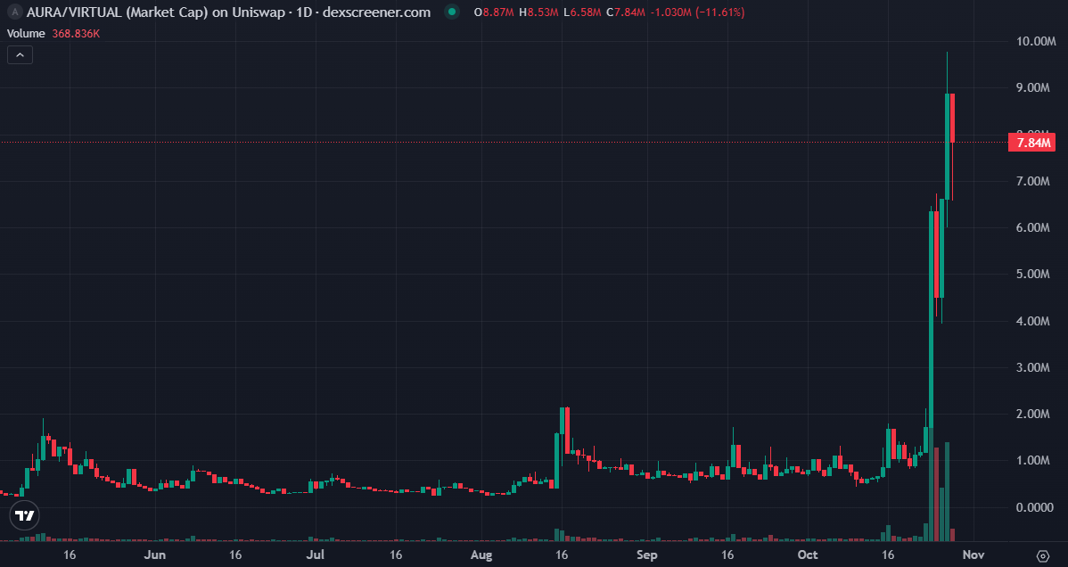 当前市值: AURA 市值昨日一度触及 1000 万美元,暂报 780 万美元。