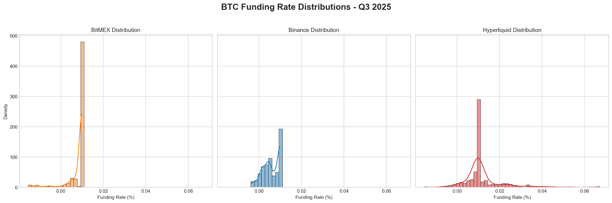 - 场所选择: 决定底层市场。如分析所示,资金费率在不同交易所之间可能差异很大。如果您的策略依赖于捕捉剧烈、短期的波动,那么像 Hyperliquid 这样波动性大的场所可能适合。如果您的策略基于赚取可靠的基线收益,那么更稳定的场所可能更可取。