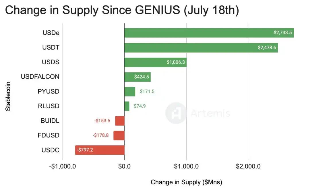 GENIUS 法案后稳定币增长 https://x.com/artemis/status/1952074174001795316